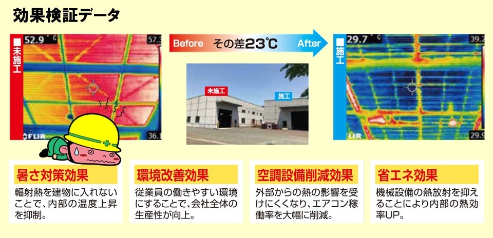 ・夏の太陽光による屋根からの輻射熱を97%ブロック!(屋根下温度を大幅低減)