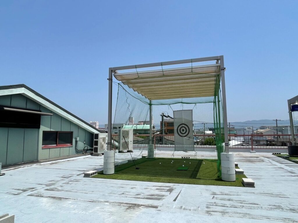 スイング、素振りするだけなら、ゴルフでも野球でも問題ありません。強い日差しを抑えることもできますし、シートをテント生地にすれば雨天練習も(^^♪