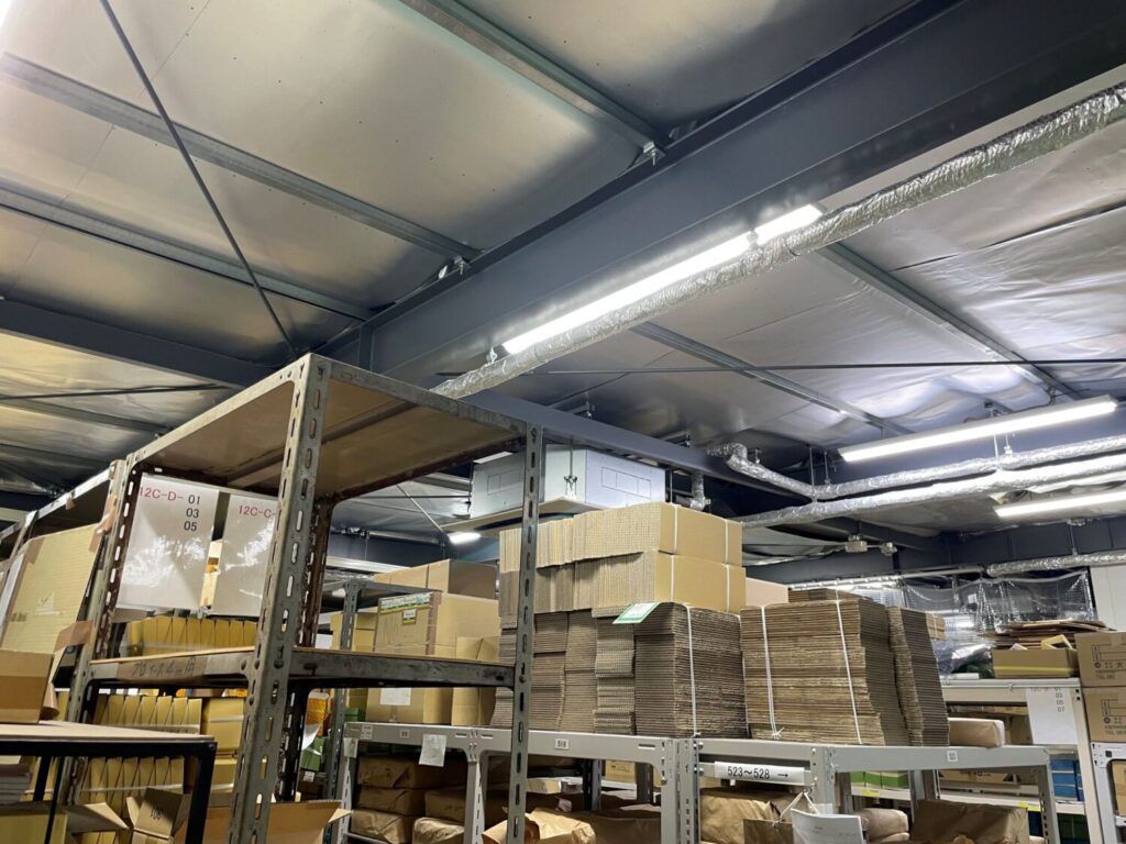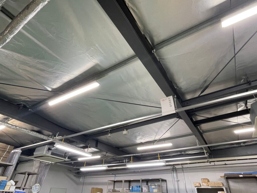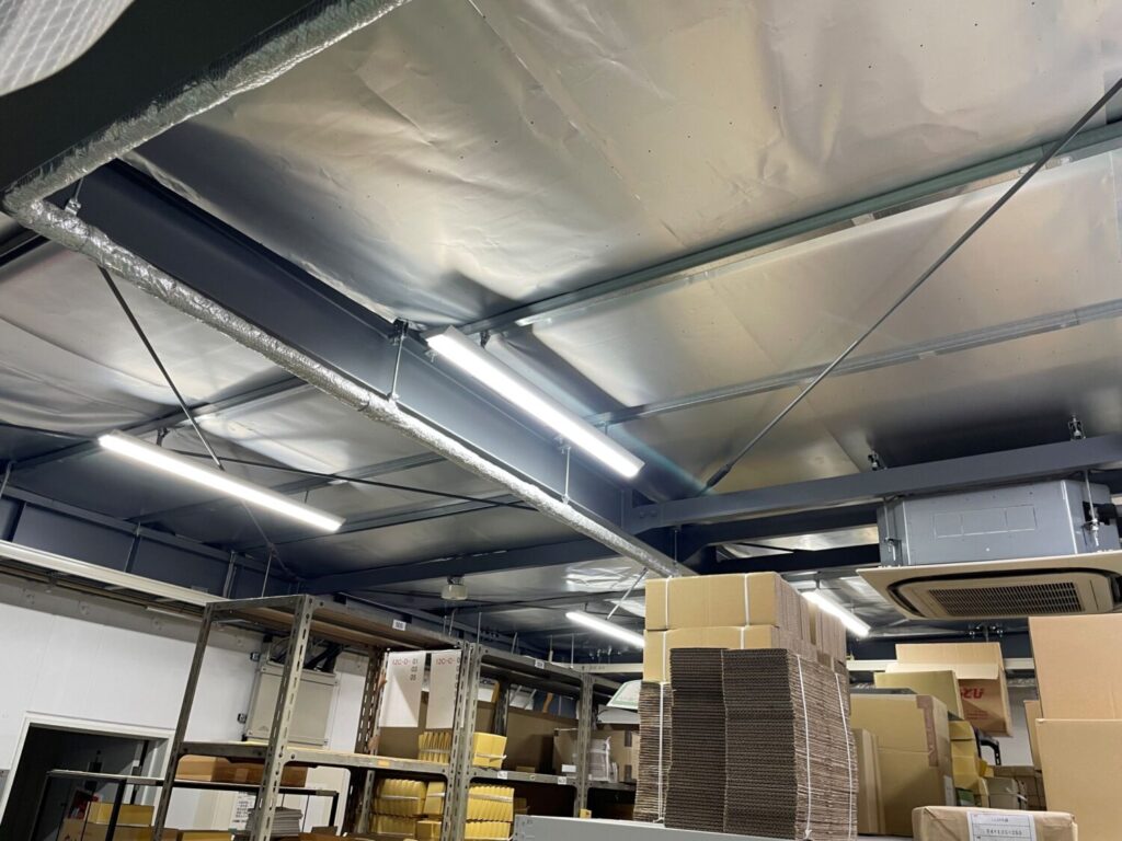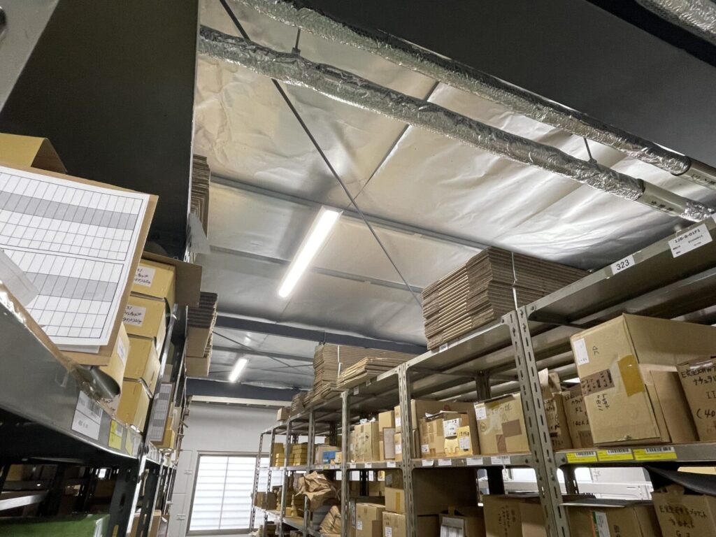 工場2階の天井裏に遮熱シートを施工しました。