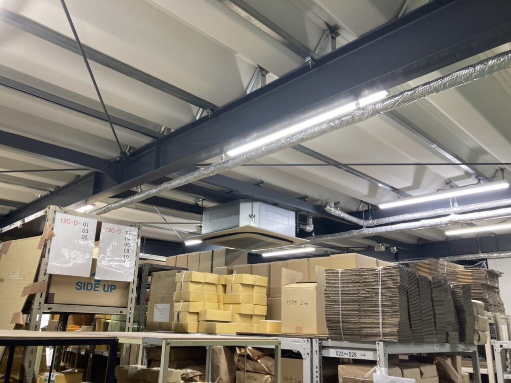 エアコンも設置しているのですが、光熱費の問題と、折板屋根からの輻射熱で頭上付近に熱気がこもりがちとのことで職場の環境改善のためにご採用いただきました。従業員の方からは、夏、「ムッとした熱気がなくなった」「エアコンの効きが良くなった」と好評!実は、遮熱シートは冬にも効果を発揮。暖房効率が上がるだけでなく、屋根からの冷気を抑える働きもあるので肩口の冷えも軽減します。エアコンを設置していない倉庫や工場でも効果を発揮します!